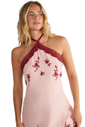 Floral Embroidered Halterneck Maxi Dress