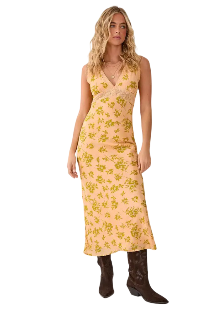 Step into effortless sophistication with this stunning Plunge Lace-Insert Maxi Dress, crafted for women who want to blend allure with timeless elegance. The bold plunge neckline shapes a beautifully feminine silhouette, while delicate floral lace inserts add texture, romance, and subtle sophistication. The flowing maxi hem creates graceful movement with every step, and the woven fabric drapes beautifully for a look that feels both refined and sultry. Whether you're dressing for a summer soirée or an intimate evening out, this versatile piece transitions seamlessly across seasons and occasions.